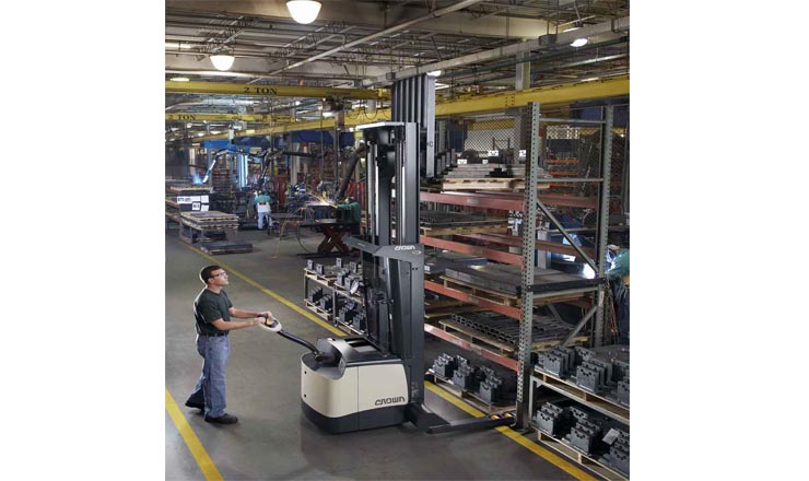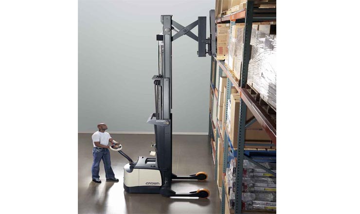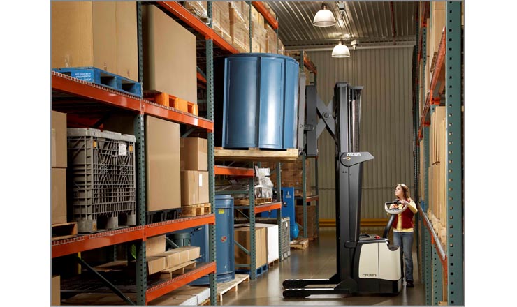 超小轉彎半徑——  Crown-科朗SHR系列步行前移式叉車,通過新型控制器和緊湊設計提升操縱性,具有前移式叉車中較小的轉彎半徑(1510mm)和較小的直角堆垛通道寬度(1.1m*1.1m托盤,直角堆垛通道寬度不足2.3米),超常狹小空間內也能方便使用。