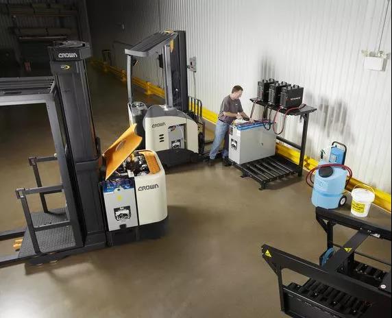 因此,電池液位需要經(jīng)常檢查,確保每個電池單體內(nèi)的液位都處于正常水平。電池中水的消耗跟使用頻率有關(guān),倉庫管理者應(yīng)該根據(jù)叉車的使用強(qiáng)度,制定電池檢查規(guī)范。