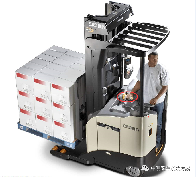 Crown-科朗設計的多任務控制手柄,可以讓操作員同時執(zhí)行多種任務,如叉車前進/后退、貨叉升高/降低、前傾/后仰等,只需保持同一個姿勢,就可完成多種任務!