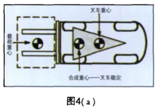 (c)動態(tài)穩(wěn)定性。以上的穩(wěn)定性討論沒有考慮車輛和貨物移動對叉車所產(chǎn)生的動態(tài)影響。重量轉(zhuǎn)移和合成重心變化取決于叉車運行、制動、轉(zhuǎn)彎、起升、傾斜和下落貨物等情況時產(chǎn)生的動態(tài)力,這些是影響穩(wěn)定性的重要因素。