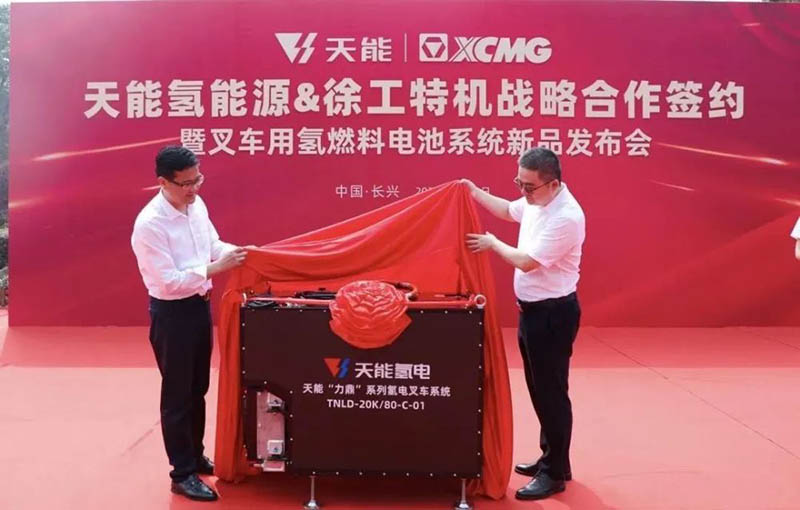2021年9月28日,天能氫能源與徐工集團(tuán)旗下公司徐州徐工特種工程機(jī)械有限公司(下稱“徐工特機(jī)”)簽訂戰(zhàn)略合作協(xié)議。簽約儀式現(xiàn)場(chǎng),天能氫能源正式發(fā)布了徐工叉車(chē)用氫燃料電池系統(tǒng)新品。