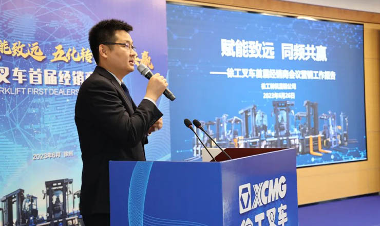 第二個(gè)環(huán)節(jié)是徐工叉車營銷工作報(bào)告。徐工特機(jī)副總經(jīng)理、營銷公司總經(jīng)理胡斯勒在會上作了營銷工作主題報(bào)告,回顧近年徐工叉車取得的市場成就,從宏觀角度深刻剖析全球及行業(yè)發(fā)展趨勢,全面闡述了徐工叉車戰(zhàn)略藍(lán)圖、經(jīng)營模式、業(yè)務(wù)模式,開拓了我們經(jīng)銷商的經(jīng)營思路和應(yīng)對措施,鼓勵(lì)叉車經(jīng)銷商們協(xié)同一致,行而不輟,未來可期。